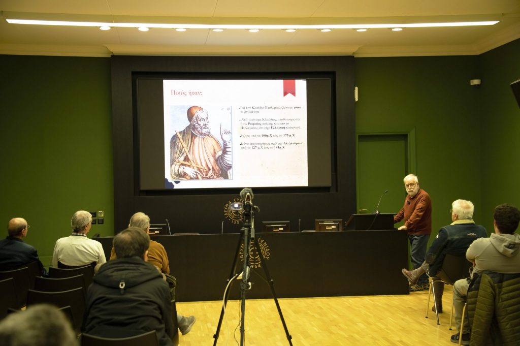 Στη συνάντηση αυτή ξεκινήσαμε με ομιλία του Γιώργου Λαμτζίδη, με θέμα την "Μεγίστη" Μαθηματική Σύνταξη (Αλμαγέστη) του Κλαύδιου Πτολεμαίου, που ήταν το κύριο αστρονομικό εγχειρίδιο για 1500 χρόνια.